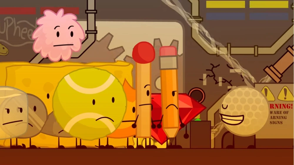 | Interacciones de varios personajes | 8-Ball y Basketball • 8-Ball y Golf Ball • Balloony y Cloudy • Balloony y Rocky • Barf Bag y Donut • Barf Bag y Lollipop • Barf Bag y Spongy • Basketball y Golf Ball • Basketball y Grassy • Basketball y Snowball • Black Hole y Remote • Black Hole y Tree • Blocky y Bubble • Blocky, Eraser y Pen • Blocky y Flower • Blocky y Golf Ball • Blocky y Snowball • Blocky y Taco • Blocky y Woody • Book y Gaty • Book y Ice Cube • Book, Lollipop, y Taco • Book, Match y Pencil • Bracelety y Ice Cube • Bubble y Flower • Bubble y Ice Cube • Bubble y Leafy • Bubble y Match • Bubble y Pencil • Bubble y Ruby • Bubble y Snowball • Cake y Loser • Coiny y Firey • Coiny y Needle • Coiny y Pin • Coiny y Snowball • Donut, Four y X • Donut y Gelatin • Eraser y Golf Ball • Eraser y Pen • Firey y Flower • Firey y Leafy • Firey y Tennis Ball • Flower y Gelatin • Flower y Leafy • Flower y Ruby • Foldy y Stapy • Foldy, Marker, y Stapy • Four y X • Fries y Gelatin • Fries y Golf Ball • Fries y Puffball • Gaty y Saw • Gelatin y Leafy • Gelatin y Lollipop • Gelatin y Teardrop • Golf Ball y Robot Flower • Golf Ball y Snowball • Golf Ball y Tennis Ball • Ice Cube y Leafy • Ice Cube y Pencil • Leafy y Needle • Leafy y Woody • Marker y Stapy • Match y Pencil • Match, Pencil, y Spongy • Match y Ruby • Needle y Pin • Pen y Pencil • Pencil y su alianza • Pencil y Ruby • Pin y Teardrop • Rocky y Tennis Ball | |
