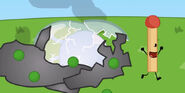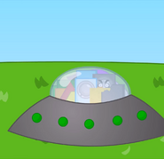 The UFO later appeared in "Return of the Hang Glider", where it abducted Tennis Ball, Match, Snowball, and Woody for an unknown reason. Match turns off its flying switch, causing it to plummet to the ground, where it crashes and kills Flower. It is also revealed that Woody had died in the UFO due to his fear of the color gray. The Speaker Boxes exit the craft to bring the Announcer with them. The UFO then somehow repairs itself and quickly shoots off into space.