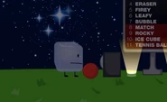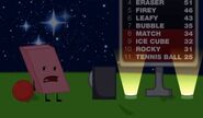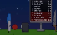 In "Don't Lose Your Marbles", the contestants must locate red balls, however, whoever brings maroon balls to the Announcer loses 10 points. Match brings a maroon ball to the Announcer, and goes down the ranks due to the 10 point penalty she is given before kicking it away. Leafy found a maroon ball, without knowing it was a maroon ball, and gave it to Ice Cube, causing her to lose 10 points, and want revenge on Leafy. Eraser finds one and loses points. He ends up being the last person to find a ball, taking so long that it turns to night. He eventually finds a ball, but it's so dark the Announcer can't tell if it's red or maroon. Eraser then accidentally sets it on fire with Firey. The Announcer eventually believes it is a red ball, awarding Eraser 1 point.