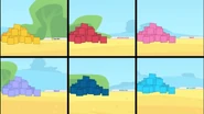 In "Getting Puffball To Think About Rollercoasters", the blocks again play a significant role. Two has placed stacks of them all over the area, which collapse and crush contestants. To solve this, Two tells the contestants to use the blocks to build their amusement park attractions as part of the challenge. From this episode onward, the A-twos-ment Park and its block-based attractions can be seen throughout the show, either as background props or in relevant use.