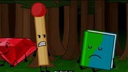 In "No More Snow!", Match and Pencil laugh at Book when she considers rescuing Golf Ball, Tennis Ball, and Rocky from Evil Leafy. Match calls Book hilarious, and then tells Book to shush after she asks her if she wants to win and Book replied yes. At the ending, Book is saddened when Match uses Ice Cube to put out a fire.