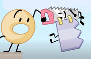 In "You Know Those Buttons Don't Do Anything, Right?", Saw admits that she misses Lollipop and Taco, but Gaty reassures her that she's still here for her. The two end up being on the same team as each other. In the challenge, Saw has Donut hold her over the edge of the building. Gaty sees this and magnetizes her hinges to get pulled up to her, making their team safe.