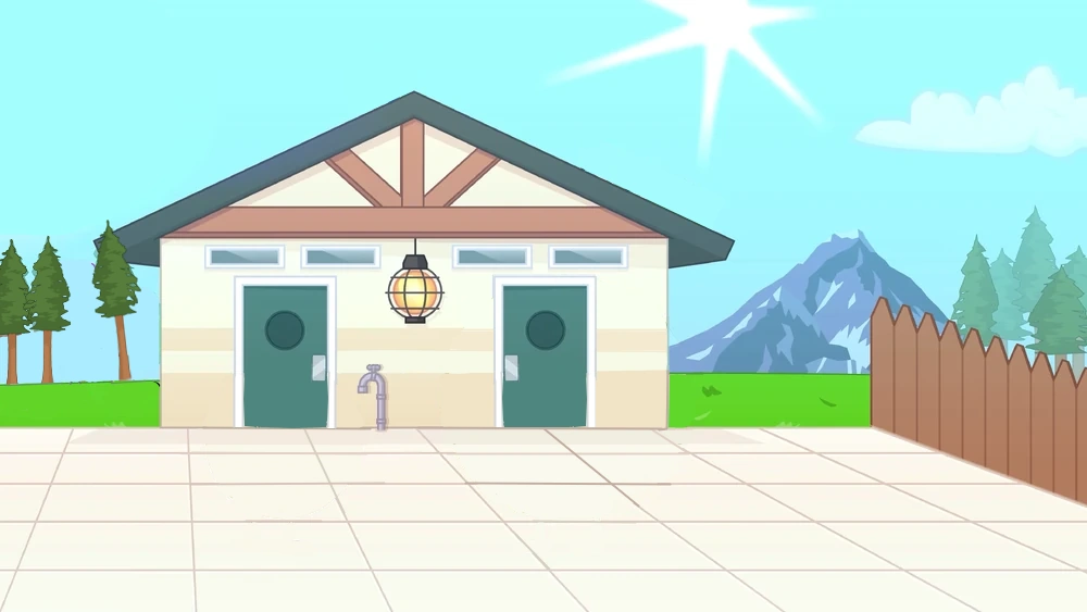 In BFB, the doors on the bathrooms are now the same color as the details on the building. The light gradient doors would make a return in "What Do You Think of Roleplay?" when Bomby is finished using the stall on the left.