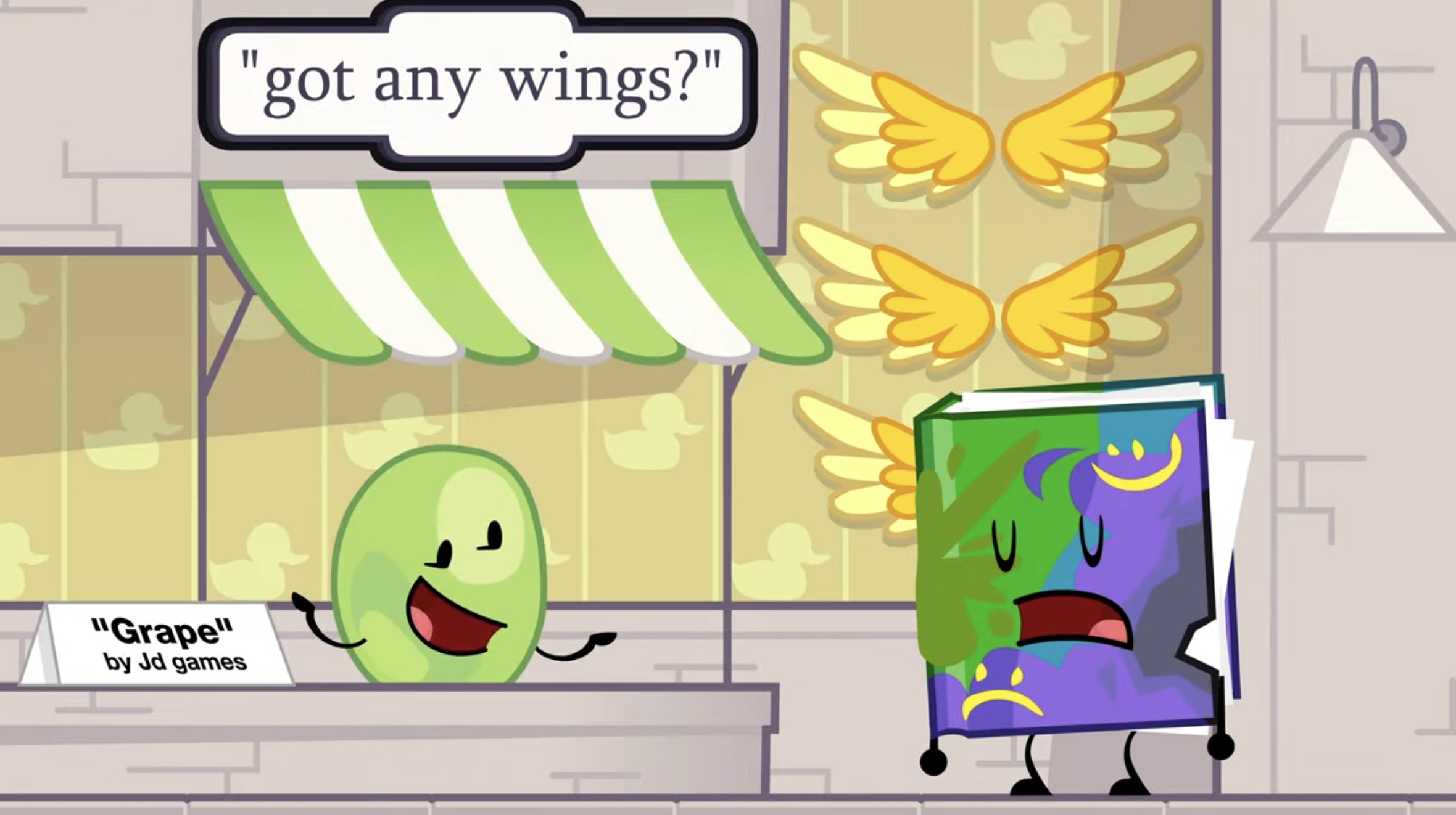 The second floor, which offers pairs of wings, is run by the recommended character Grape, who gives Book a pair of wings in exchange for lemonade. The floor's name, character, and request are all references to "The Duck Song".