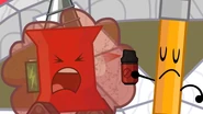 In "Take the Plunge: Part 2 ", Pencil stares at Pin in shock after hearing her criticize every contestant who wasn't yet picked into a team.