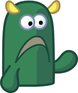 Puppet is a dark green hand puppet with a sad mouth with a brown opening and yellow horns. It has big eyes with tiny pupils. In its BFB 15 appearance, Puppet was an edited image of a Davidian. In BFB 16, it had a black mouth and a yellow nose.