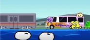 In "Who Stole Donut's Diary?", Four punishes Firey by making him clean the entire railway after he steals Donut's Diary. Leafy offers to help, but she burns to death during their hug. The express train is destroyed off-screen due to the fire.