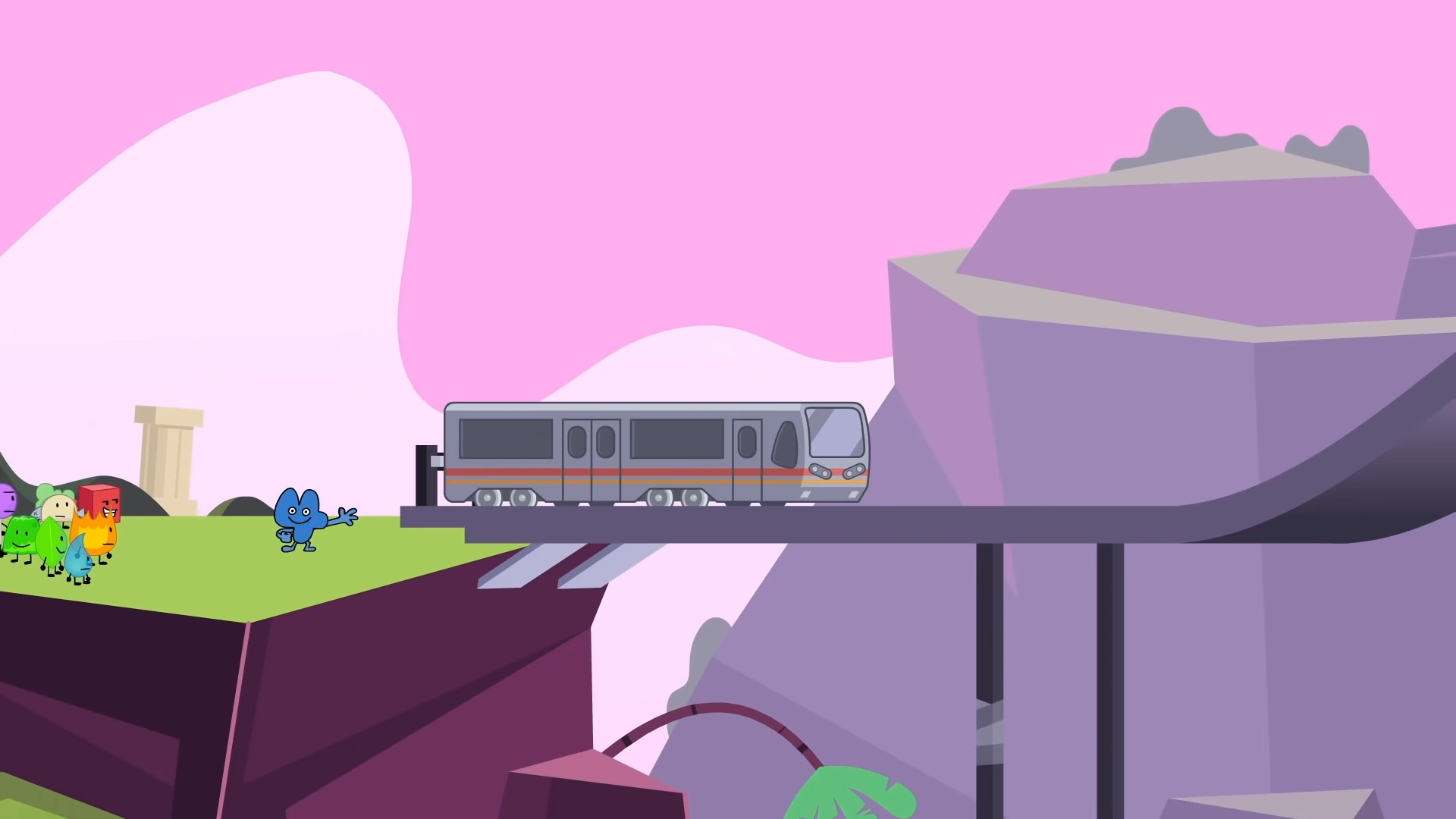The Railway is a location in Battle for BFB. It spans roughly 2,763 miles between The Pillary Ruins and Yellow Face & Taggy's warehouse, crossing through the Mountain Range. Two trains operate on the railway; the High-Speed Express Train and the Steam Train. The railway also exclusively connects the Steam Train to the Grasslands.