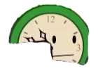 Silly Clock is a recommended character who appeared in "The Game Has Changed". They were recommended by Splat's toy channel. They are a green clock with realistic hands and crazy eyes.